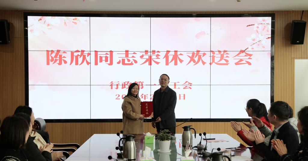 2月28日下午,办公室陈欣同志荣休欢送会在行政楼举行。学校领导张志祥、何翔、罗虹出席会议,行政第一分工会相关部门负责人及办公室全体成员参加会议。