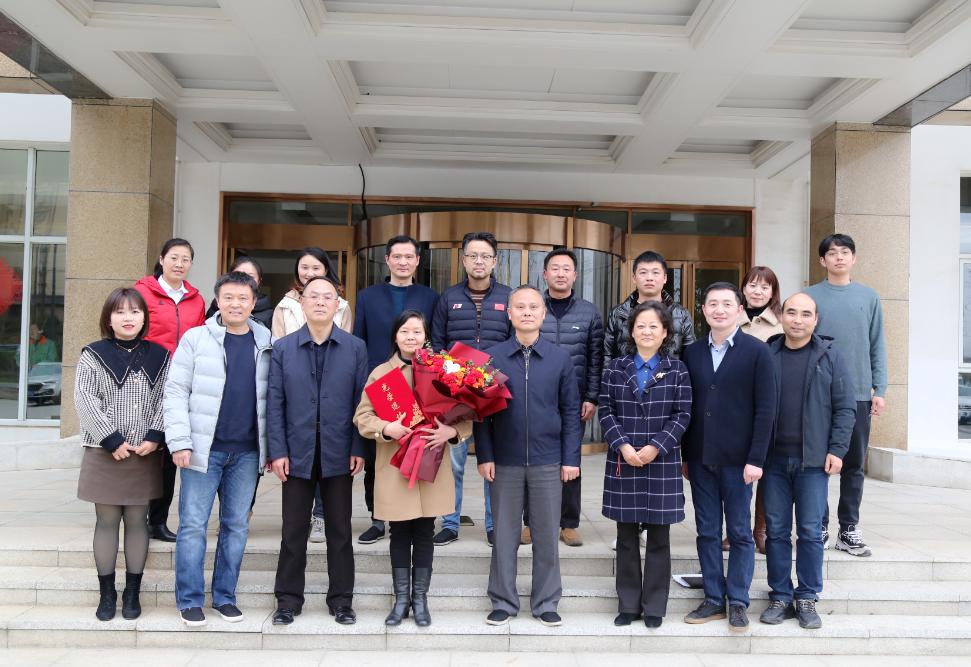 会上,何翔为陈欣颁发光荣退休证书,罗虹为陈欣送上鲜花。