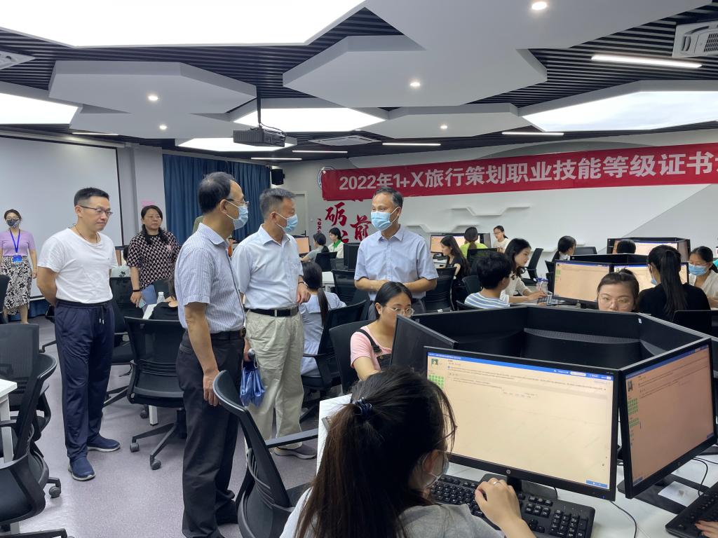 为深入贯彻落实《国家职业教育改革实施方案》精神,积极开展1+X证书制度试点工作,6月12日,文化创意学院茶旅教研室顺利组织“2022年1+X旅行策划职业技能等级证书(中级)”认证考试。学校党委书记张志祥,党委副书记、副校长何翔赴考点查看考试组织情况,教务处、文化创意学院相关负责人陪同巡视。