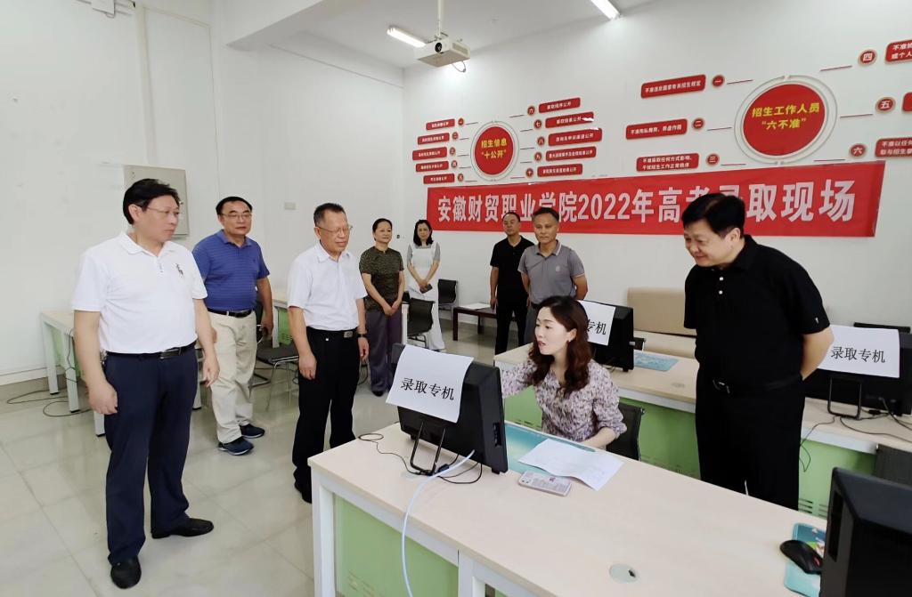 魏邦余听取了学校关于今年高考整体生源形势与当前录取进展工作的汇报,并实地查看了录取工作现场。