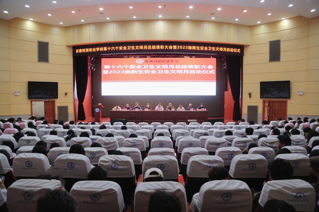 10月18日中午,学校在翡翠校区图书馆报告厅举行第十六个安全卫生文明月总结表彰大会暨2023级新生安全卫生文明月启动仪式,党委委员、副校长胡戴新出席。