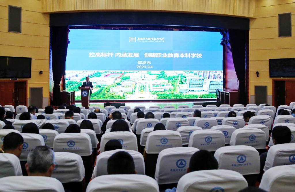 4月3日下午,学校在学术报告厅举办“双高计划”建设培训讲座,邀请安徽商贸职业技术学院党委委员、副校长郑承志来校指导。党委委员、副校长王海龙出席并主持会议。学院中层干部及专兼职教师参加培训。