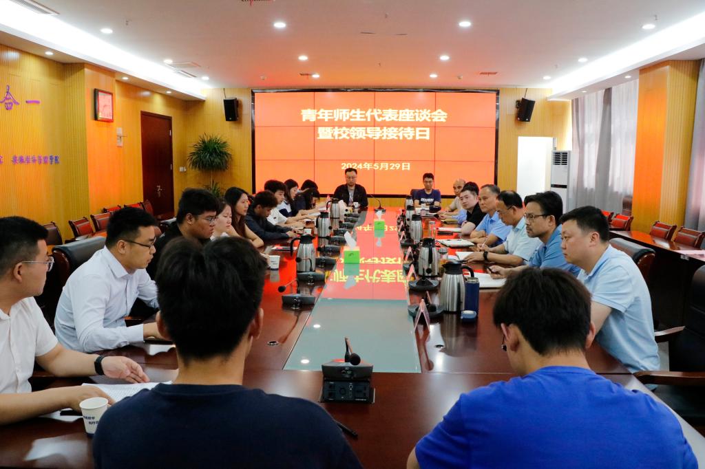 5月29日下午,学校在翡翠校区行政楼204会议室举行青年师生代表座谈会暨校领导接待日活动,学校党委书记张志祥出席会议,党委副书记、副校长何翔主持会议,办公室、人事处、教务处、学生处、总务处等部门负责人参加会议。