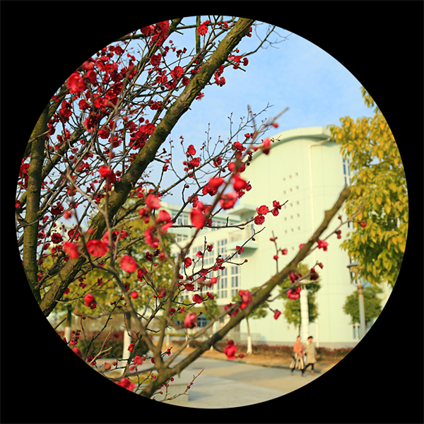 未出正月,校园里已有了春意。绿树掩映下的梅花星星点点,让早春的校园多了几分色彩。