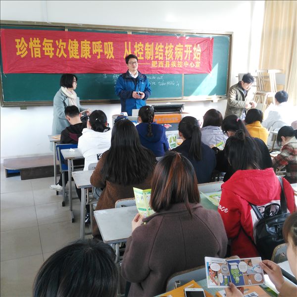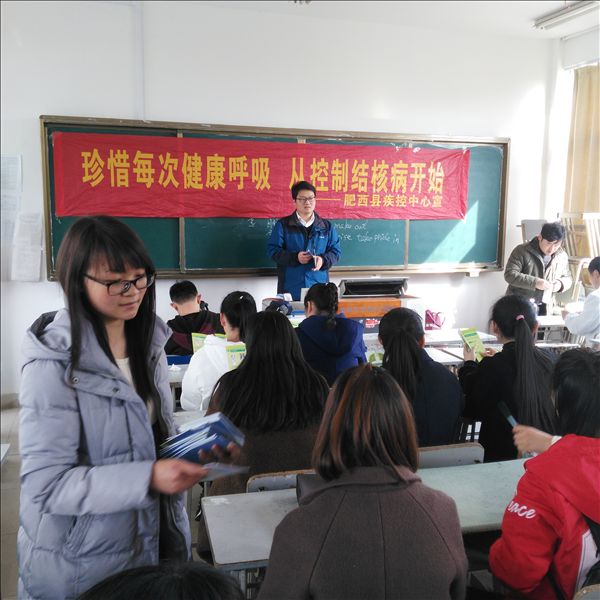 肥西县疾病预防控制中心结核病防治科科长赵天翔为同学们普及了结核病医学常识,结核病是由结核杆菌引起的慢性呼吸道传染病,可侵及人体许多脏器,以肺部受累形成肺结核最为常见,排菌患者为其重要的传染源。人类主要通过吸入带菌飞沫而感染。