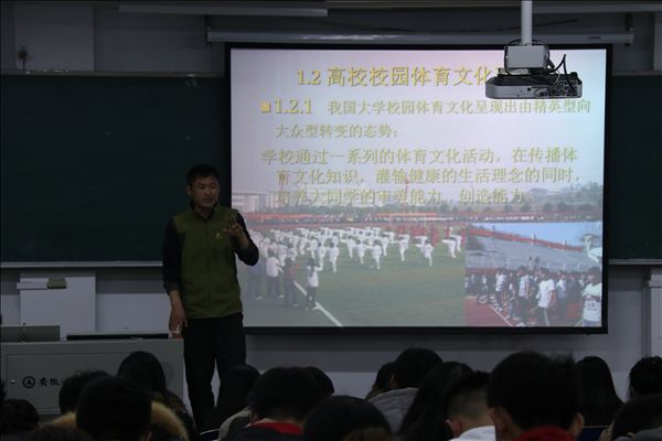 讲座中,朱亚伟从体育文化的概念出发,通过中外校园体育文化对比,陈述我国当前校园体育文化现象和发展特征,从校园体育文化功能对高校校园体育文化所承载的精神价值、健康价值、审美价值和经济价值进行推测和判断,指出高校校园体育文化对于对大学生综合素养培养和发展意义深远,强调大学生要顺应社会发展对新型人才需求,紧跟时代脉搏,融入校园体育文化中;倡导当代大学生要在校园体育文化中培养体育精神,形成体育思想,为成为合格的社会人做好准备。