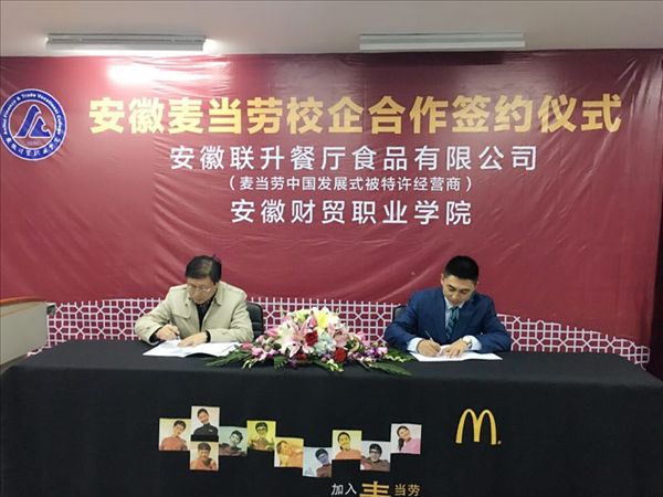 安徽联升餐厅食品有限公司表示,麦当劳是一家现代化、锐意进取、不断创新和永远年轻的企业,其最新品牌价值超过811亿美元,中国麦当劳通过“麦苗计划”开展校企合作,对员工开展“千里马快速发展计划”,提高他们的管理和领导团队的能力,为其提供的快速发展的机会,培养出色的商业管理精英。此次与安徽财贸职业职业学院等高校的合作,将更加有助于培育更多更优秀的“小麦苗”。