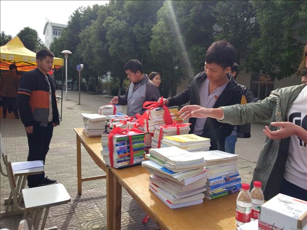 在图书信息中心领导及老师的指导下,同学们积极地响应活动的号召,将读过、用过的图书捐赠到活动地点,各兄弟社团也纷纷捐赠图书、献出爱心。读书协会会员们一一登记捐赠者的信息,还特别为捐赠者摄影留念。