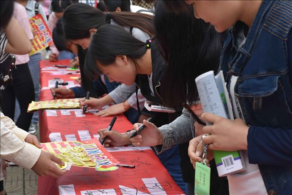 5月23日,学院第七届心理健康节开幕,学生处在校园里举办“读懂你我 共享青春年华”的大型签名仪式暨心理健康现场咨询会。