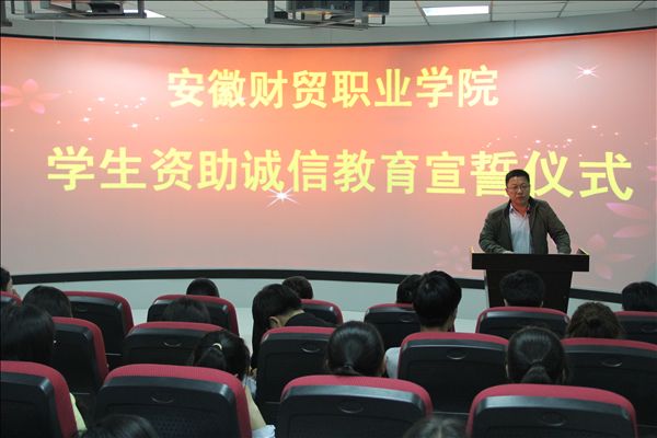 5月11日中午,学院第三届学生资助诚信教育主题月活动宣誓仪式在3D实训室隆重举行。学生处副处长张伟、各院系学生秘书、专职辅导员及100多名受资助学生代表参加了宣誓仪式,会议由学生资助管理中心主任王学峰主持。