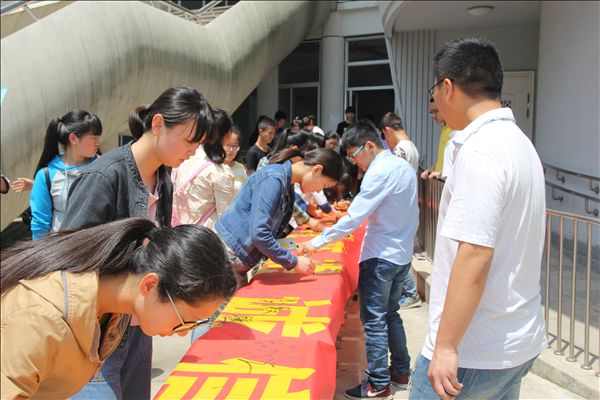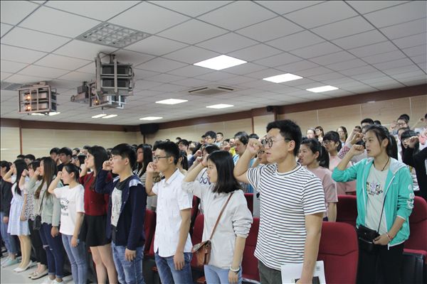 宣誓仪式上,财税金融系农金1402班国家励志奖学金获得者田慧同学代表全体受资助学生发言。国家助学金获助者汪志勇同学带领参会的全体学生庄严宣誓。会后,同学们积极参加诚信教育大型签名活动。