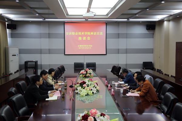 4月21日下午,安庆职业技术学院副院长占峰带领成人教育部相关人员来院考察自学助考工作,学院副院长胡戴新及相关职能部门负责人热情接待了来宾并与之座谈。座谈会由院办副主任王良斌主持。