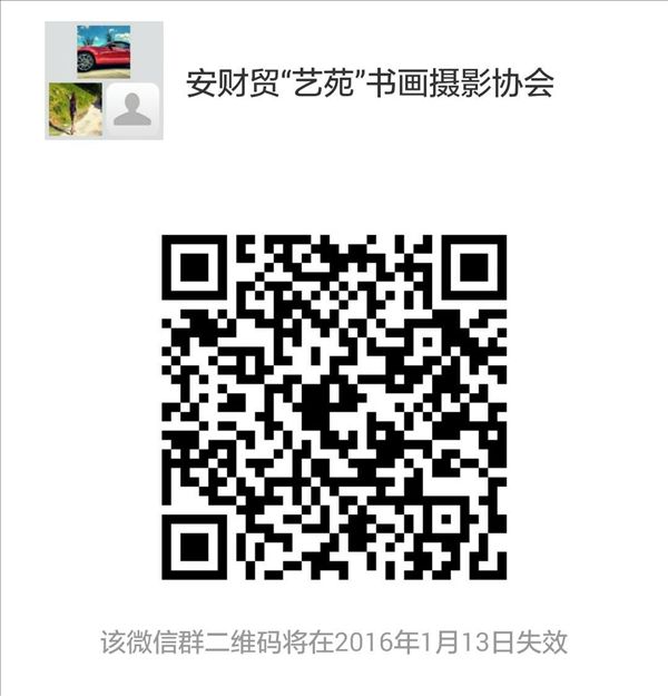 据协会筹备组介绍,不日“艺苑”教工书画摄影协会将召开成立大会,协会章程等制度已经出台。协会旨在弘扬书画摄影艺术,活跃教职工业余文化生活,提高艺术欣赏与创作水平,促进校园文化建设。入会报名时间截止1月13日,在校教职工可以通过扫下方的二维码加入协会微信群或者查找QQ群号2037030653申请入会,批准后填写《beat365在线唯一官网“艺苑”教工书画摄影协会会员登记表》即可。