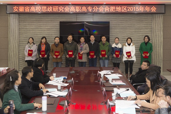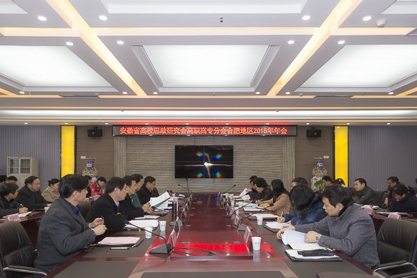 1月9日下午,安徽省高校思政研究会高职高专分会合肥片2015年年会在安徽水利水电职业技术学院召开。共有21所高职院校的党委书记、思政部门负责人和教育工作者近60人参加了会议。学院党委副书记胡善珍和宣传部、思政部相关负责人参加了会议。会议由安徽水利水电职业技术学院党委书记周银平主持。