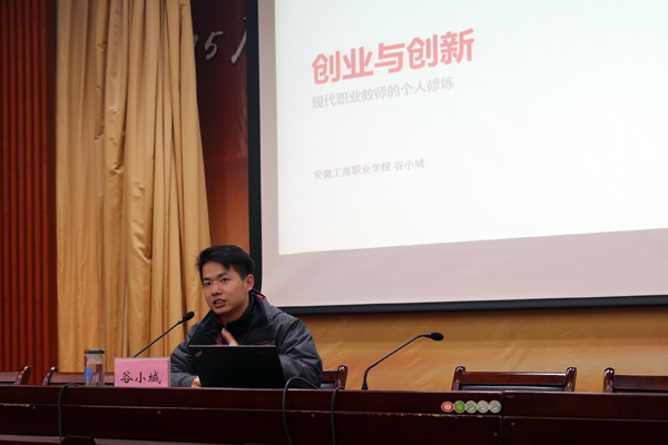 12月23日下午,受学院教务处和大位会计学院共同邀请,安徽工商职业学院青年教师、《表格之道》在线课程制作人、网易云课堂突出贡献教师谷小城在学术报告厅为我院专兼职教师作了题为“创业与创新——现代职业教师的个人修炼”的讲座。学院党委副书记胡善珍、副院长胡戴新出席了讲座。教务处处长余敏主持了讲座。