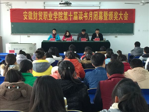 12月8日中午,由图书信息中心承办、读书协会协办的学院第十届读书月活动在6101教室落幕。万方数据资源安徽区总经理陈丽女士、学院科研处副处长席清才、团委副书记朱玫林、图书信息中心主任张克应邀出席了闭幕大会并为获奖同学颁奖。