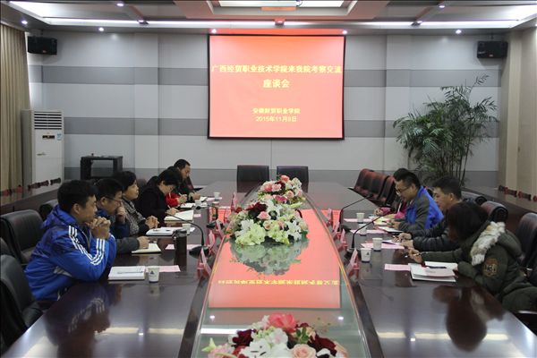 11月9日,广西经贸职业技术学院财务处、学生处、学生资助中心等部门我院考察交流,受到了党委副书记胡善珍接见。我院学生处、财务处、总务处等参加了座谈交流。