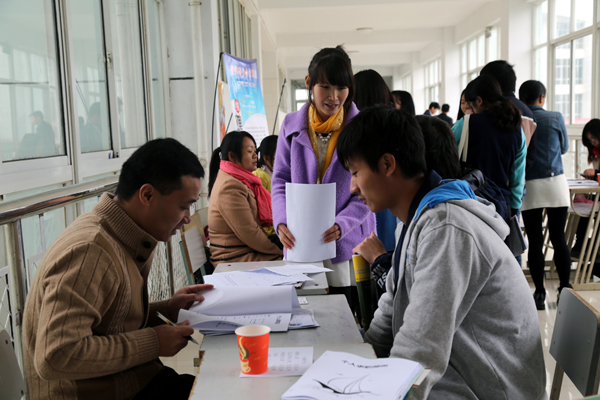 虽然天气寒冷,但招聘会现场人头攒动,气氛热烈。各用人单位积极宣传企业优势,吸引毕业生前来咨询和投递简历,部分单位还于当日下午举办了专场宣讲招聘会,现场对毕业生进行面试。毕业生与用人单位积极交流,主动了解其需求情况。与往届相比,今年毕业生在投递个人简历时更为慎重,在关心用人单位的现状、待遇和发展前景的同时,也详细地咨询合同签订的相关事宜,少了些盲目,多了些理性。