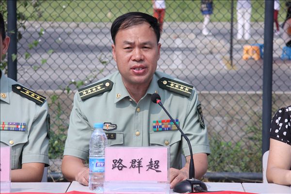 路群超政委代表陆军军官学院全体官兵向学院全体教职工表示诚挚的问候和崇高的敬意!向2015级全体新生顺利入学表示衷心的祝贺!他在讲话中强调,军训是同学们入学后学习生活的前奏,是接触军营生活、了解国防知识的课堂,更是一个挑战自我、提升自我的过程,不仅能增强同学们的体魄、提高国防意识,而且还有助于塑造大家坚忍不拔、迎难而上的坚强品格。希望同学们珍惜这次军训机会,发扬中国人民解放军的光荣传统和优良作风,在服从命令中遵守组织纪律,在摸爬滚打后学会艰苦奋斗,在互帮互助中感受团结友谊,真正成为一名有理想、有道德、有文化、有纪律的高素质大学生。他对全体教官提出要求:一定要尽自己所学、所能、所长,严格施训、科学施训、安全施训,让同学们真正在军训中学有所得、学有所获,不辜负学院领导和老师的期望和重托,为圆满完成此次军训任务做出自己的贡献!