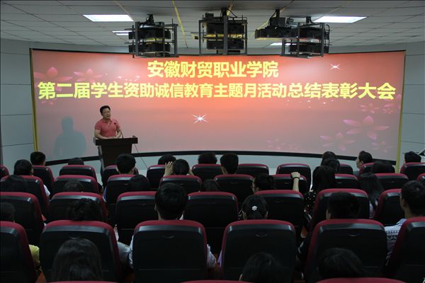 今年的诚信教育月活动中,学院举办了诚信教育宣誓仪式、诚信签名活动、诚信金融知识讲座、学院十大诚信自强之星评选表彰、“大学生自立自强、励志成才、报效祖国”演讲比赛、“资助政策、助我飞翔”征文比赛、诚信座谈会等活动,参与学生达到一万余人次。