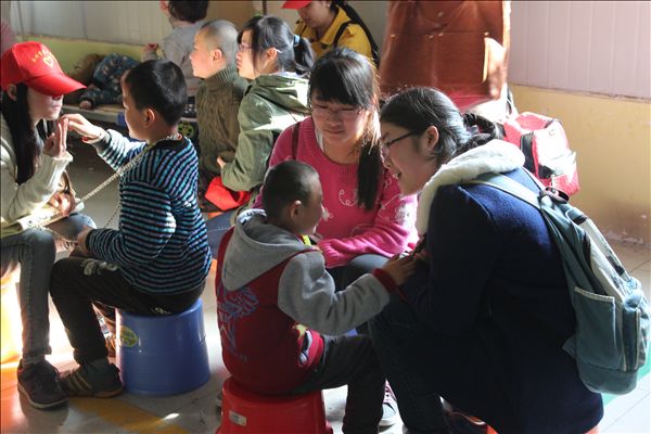 在特教中心,志愿者们主动走进小朋友们中间,陪伴他们玩耍、游戏,并给他们辅导讲解功课。此外,志愿者还与特教中心的老师们攀谈,详细了解小朋友们的学习、生活情况,询问在帮扶的时候的注意事项,并参观了小朋友们的康复成果。特教中心的老师们表示:相比较一般的孩子而言,这里的孩子更加需要关怀、陪伴和鼓励,志愿者们的到来带来了社会的温暖,这份温暖能更好地帮助他们健康成长。