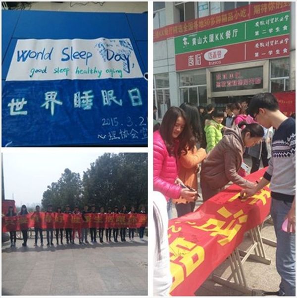 3月20日,心理协会在5102教室播放心理影片《睡眠经销商》;21日中午,世界睡眠日当天,心理协会在学生餐厅西门举办了“只要睡得好 健康生活跟你跑”的大型签名活动,同时还以抽奖激励的形式开展互动,与学院广大师生共同分享健康睡眠的知识。心理健康教育中心的老师表示,睡眠关乎一个人的心理健康,树立阳光心态,从健康睡眠和正确的作息生活开始。