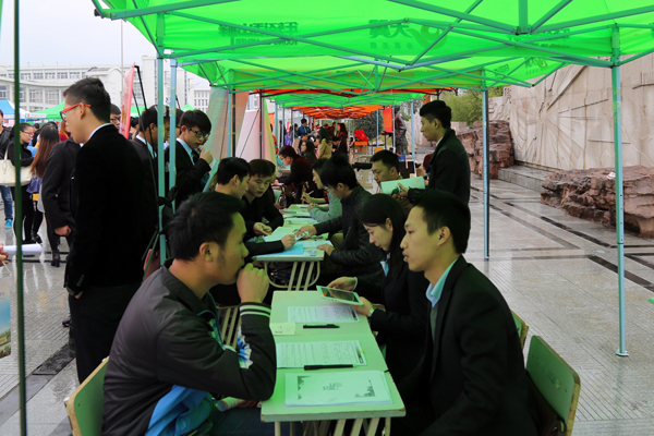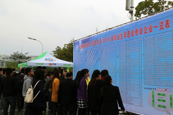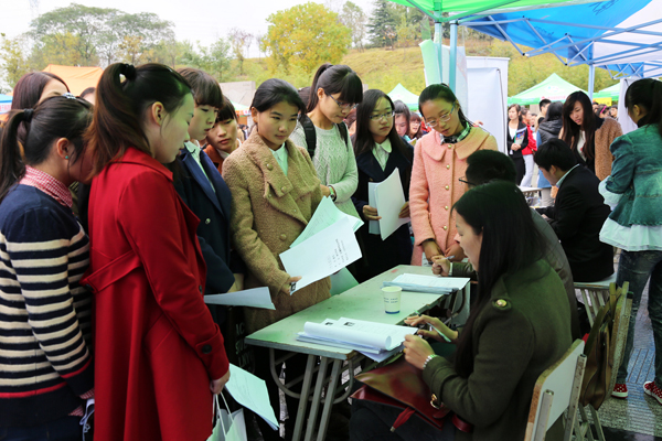 11月8日,由安徽省大中专就业指导中心主办、学院承办的2015届安徽省财经类(高职高专)毕业生秋季双选会在学院徽文化广场举行。近200家用人单位现场招贤纳才,涵盖制造、商贸、金融、酒店、医疗、教育、管理、信息、传媒等多个行业,提供各类就业岗位超7000个,吸引了学院和省内部分财经类高职院校数千名2015届毕业生前来应聘。
