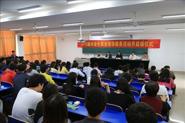 10月22日下午,学院2014年就业指导服务活动月启动仪式在6102教室举行,省大中专就业指导中心副主任闫明圣、派遣部主任崔松革,学院党委书记孙永、副院长胡戴新,学生处、团委、招生就业处、保卫处、各院系学生工作负责人等出席了启动仪式,招生就业处副处长许勇主持启动仪式。