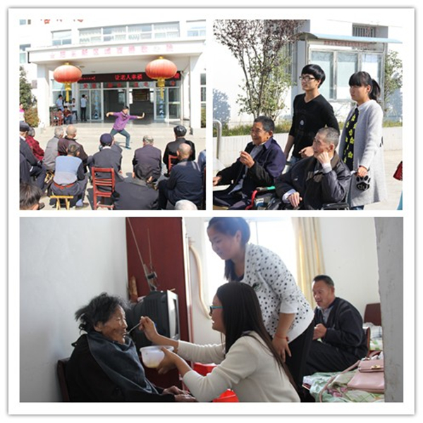 志愿者们此行还自发购买了水果、牛奶、面包等慰问品。到达敬老院后,志愿者们分组进行打扫卫生、整理房间,为老人们清洁、美化环境。随后,志愿者们还为老人准备了丰富的精神大餐,小品、舞蹈、武术、戏曲、手语等多种艺术表现方式让老人们啧啧称赞、不停夸奖。同学们表示:老人是夕阳,余晖犹在但热量日减,没有子女的陪伴更加感到孤独和寂寞,他们更需要来自的社会的关爱和帮助。