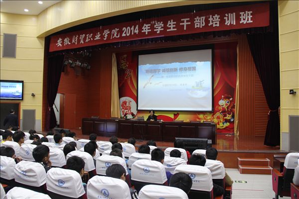 10月30日晚,2014年学生干部培训班第二场报告会由党委副书记、学院副院长胡善珍主讲,报告以“明德厚学 诚信创新 修身报国”为题,教导全体团学干部争做一名有担当的优秀学生干部,学生处副处长张伟主持报告会。