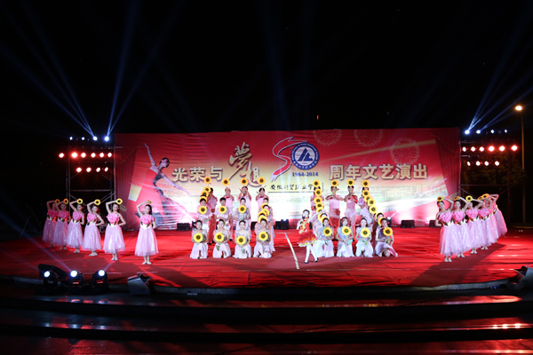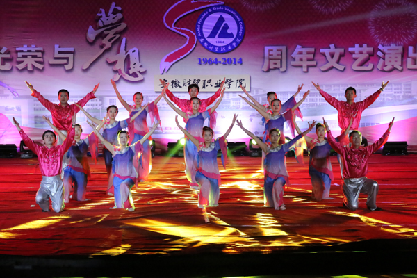 晚会分为序曲以及岁月如歌、辉煌跨越、放飞梦想三个篇章,学院师生、部分退休老同志、校友代表近三百人参加了演出。