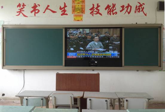 这次安装的多媒体液晶黑板,除了具备上述特征外,针对我校实际情况还增加了卫星电视接收功能,可以全天接收央视1套、央视新闻、央视教育频道等50多套电视节目,同时增加了收听校园广播和调频收音功能,还设计有蓝牙播放功能。