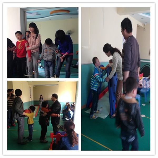 志愿者们为孩子们带去了礼物并精心准备了一些游戏活动诸如:小脚踩大脚、身体运球、跳圈圈、两人三足等。 在康复中心的老师的鼓励及志愿者的带领下,孩子和家长做起了各种游戏,孩子们也露出了平日不多见的表情。志愿者还表演了精彩的节目,温馨和谐的场面让在场的每一个人都不禁动容。