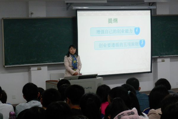 讲座围绕“放飞创业梦想”这个专题,从“创业者角色阐释、创业者面临的机遇和挑战、如何增强创业能力和创业者应有的心态”等几个方面,帮助学生认清了创业者的角色定位,明晰了创业的机遇和挑战,理解了创业的意义和价值以及如何建立成熟的创业心态。这一专题切中了在校大学生的兴趣点,点燃了大学生的创业激情,启动了大学生放飞创业的梦想,现场掌声雷动。