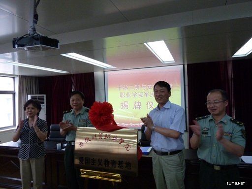 6月15日下午,省军区合肥第二干休所多功能厅洋溢着军民鱼水一家亲的浓厚情谊,学院与省军区合肥第二干休所隆重举行军民共建签约暨爱国主义教育基地揭牌仪式。干休二所所长闫卫东、政委黄国佳、学院党委书记孙永、党委副书记胡善珍等出席了签约仪式,学生处、团委、各院系党总支负责人及学生干部代表参加。签约仪式由闫卫东所长主持。