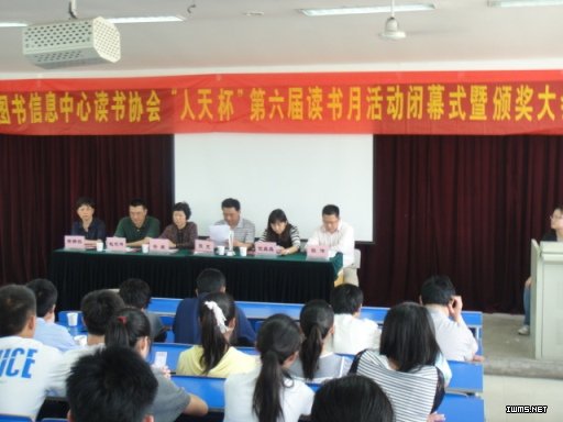会上,张克主任对本次读书月的各项活动进行了点评。他表示,读书协会以图书信息中心为阵地、以读书月活动为契机,在全院师生中掀起了一股浓浓的读书热潮,充分展示了图书馆作为信息集散中心的作用及会员们在学院读书氛围形成中的影响力。他希望同学们把读书月活动当作起点,树立终身学习的观念,养成不断学习的习惯。之后,各位嘉宾宣读了在读书月期间开展的四校联谊辩论赛、诗歌朗诵比赛、信息检索大赛、征文比赛等活动中的获奖同学名单,并为他们颁奖。图书信息中心全体老师、院社团联合会主席、副主席及兄弟社团的相关负责同学参加了会议。