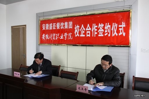 3月16日下午,在学院行政楼五楼会议室,盛臣餐饮集团与我院签订了校企合作协议。经过磋商,双方达成共同培养优秀的酒店和相关企业的服务和管理人才的意向。安徽省盛臣餐饮集团同意加入安徽财贸职教集团,成为我院实习就业基地,校企联合办学,实行订单培养。