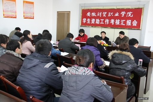12月27日下午,由安徽科技学院党委副书记蒋德勤、学生处处长汪洋、阜阳师范学院学生处处长夏晓华组成的省民生工程高校学生资助工作考核组一行来我院,考核检查2010年学生资助工作开展情况。学院在行政楼五楼会议室召开了学生资助工作考核汇报会,党委书记孙永,党委副书记胡善珍,副院长胡戴新出席,办公室、学生处、财务处等相关职能部门负责人和各院系党总支书记、学生管理秘书、专职辅导员参加了汇报会。
