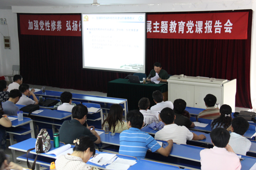 6月17日下午,学院举办了“加强党性修养、弘扬优良作风、促进科学发展”主题教育党课报告会,全院在职党员参加了报告会。报告会由党委副书记毛礼明主持。