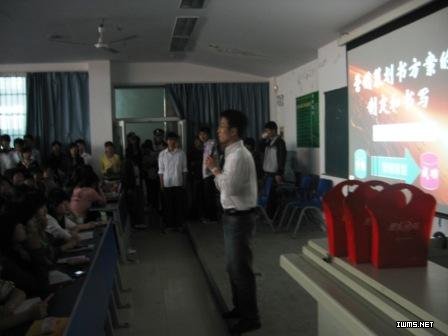 国际贸易系王伟浩老师首先为在场同学做了营销策划方案写作的专题培训。他从一个目标、二个源泉、三个分析、四大策略、五大评价标准、六点注意、七项部分总结了成功的营销策划案应具备的特点,为同学们指明了策划书写作的注意事项。