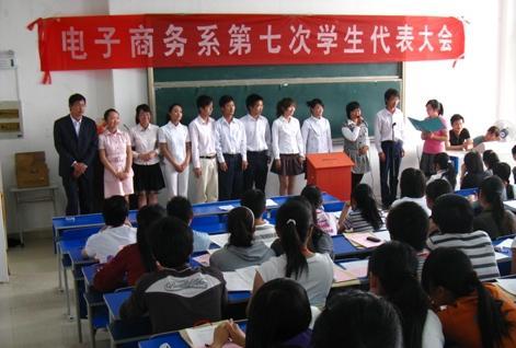 4月29日下午,电子商务系召开了第七次学生代表大会。电子商务系主任、党总支副书记朱孝立、系专职辅导员、部分班主任老师、兄弟系部的学生会干部和学生代表近百人参加了此次会议。