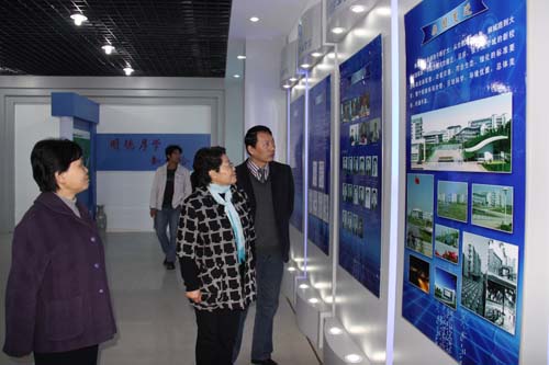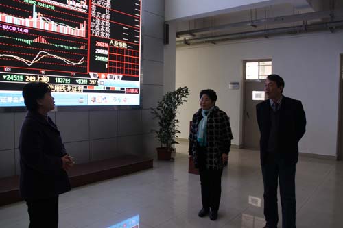 在院党委书记孙永、副院长胡善珍的陪同下,李永英巡视员深入实训楼,仔细查看了证券交易大厅、徽文化展厅、校史陈列室等场所,并详细询问了学院迎评各项工作的进展情况。