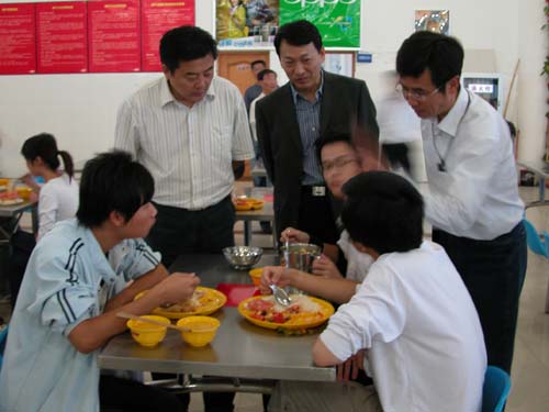徐主任一行亲临学院食堂、浴室、锅炉房、学生公寓等生活服务场所实地考察后,徐主任充分肯定了我院的后勤工作。认为我院党委重视后勤工作,积极进行后勤社会化改革的探索,使后勤工作有了保障。徐主任一行对我院采取积极措施引进社会企业参与学院后勤保障、形成良性竞争态势、并认真负责进行监管的做法,给予了肯定和鼓励。对学生食堂的价格、饭菜质量、就餐环境、浴室服务、公寓卫生、公寓的各项得力有效管理措施也表示满意。徐主任一行还对食堂后堂管理、相关设施的配套和完善公寓服务等提出了明确的要求。