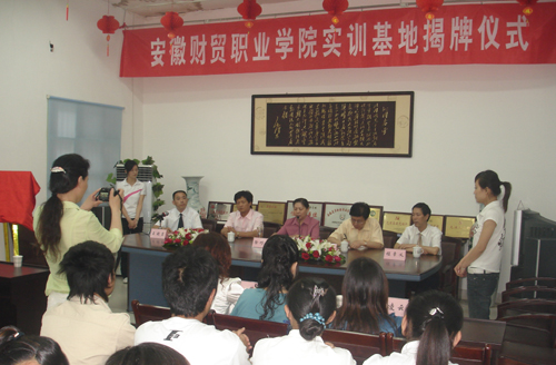 [dvnews_page] 5月23日,我院与安徽瑞隆印务有限公司签订广告会展、装饰艺术设计两专业实习基地协议,院长助理胡戴新、电子商务系副主任廖新为实训基地挂牌,并向公司董事长徐巧玲颁发了我院客座教授的聘书。
