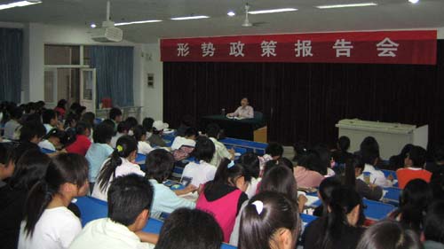 会上,胡院长从21世纪新一轮教育革命的趋势入手,紧密结合当前国际国内形势,通过列举大量的实例,以数字说话,引经据典,深入浅出地分析了在当前新的教育革命趋势下,我国教育的对策,系统阐述了当代大学生应具有的八项素养:一是要有强烈的报效国家的责任意识;二是要有良好的道德素养;三是要有建设和谐环境的素养;四是要有创新人格的素养;五是要有团队素养;六是要有诚信品德的素养;七是要有观察能力的素养;八是要有良好的心理素养。这八项素养的提出很有前瞻性和针对性,对同学们的学习、生活和今后的工作都有很多的启发和指导意义。