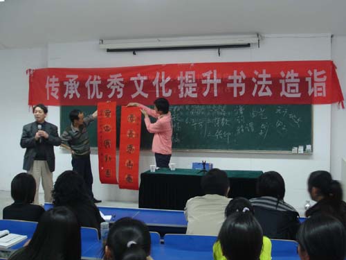 此次书法讲座旨在弘扬和继承中华民族的优秀文化传统,丰富同学们的课余文化生活,提高同学们的书法理论知识水平,同时也为院书画协会在五月下旬承办的“迎奥运 传国粹”合肥高校书画巡展活动作了准备。
