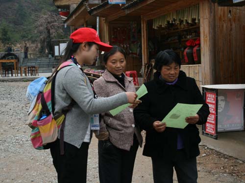 [dvnews_page] 4月3日,我院青年志愿者在江西瑶里风景区开展了“保护环境 保护资源”的环保宣传活动。志愿者们向当地的居民和旅游者发放了院团委制作的环保宣传单,起到了良好的宣传教育作用。在活动过程中,志愿者们亲身感受了自然人文资源对人类的重要性,认识到维持人与自然的和谐是大家的义务和责任。