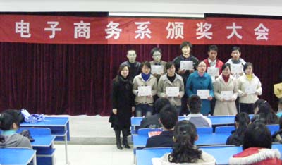 [dvnews_page] 3月6日,电子商务系在5102教室举行2007年度学生评优颁奖大会。系有关负责同志为87名院奖学金获得者、135名三好学生、46名优秀学生干部、71名单项积极分子分别颁发了荣誉证书和奖品。此项活动的开展,对于促进“三风”建设、鼓励广大同学争先创优发挥了积极的作用。