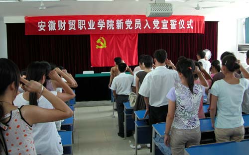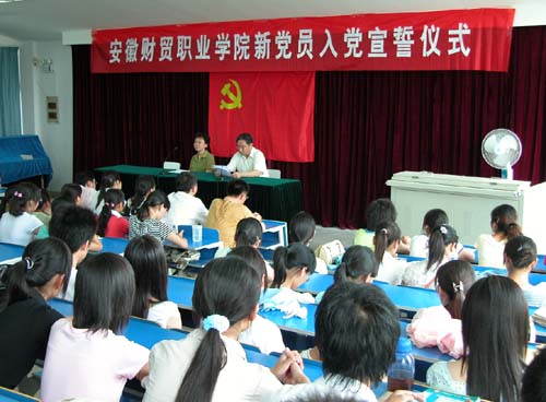 党委副书记毛礼明、副院长胡善珍及各系党总支负责人、团总支书记出席宣誓仪式。胡善珍同志主持宣誓仪式,毛礼明同志发表讲话。他代表学院党委向新加入党组织的同志表示热烈的祝贺,并对新党员提出了三点希望,一要进一步加强理论学习,不断提高政治理论素养;二要加强党性锻炼和修养,努力从思想上入党;三要在校园文明建设中起表率作用,特别是在迎评的关键时期,要以自身的模范行动带领全校师生开创新风,以实际行动展示学生党员良好的政治素质和精神风貌。