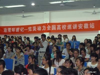 讲座中, 完美动力机构影视专家张紫轩先生用风趣的语言介绍了动漫的概念以及动漫市场国内外的发展状况,并结合现阶段动漫业在中国的状况分析了未来发展走向。艺术设计系09级同学认真聆听讲座并作了笔记。他们表示受益匪浅,知识视野得到了极大的开阔,对动漫领域有了全面的认识和了解。